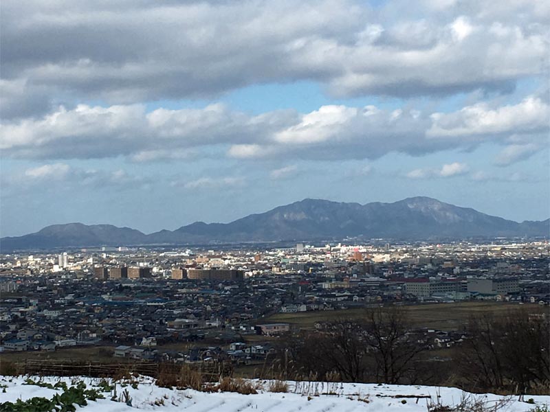 市内を見渡せる近くの山から 雪国らしからぬ正月の風情を撮る事ができました。