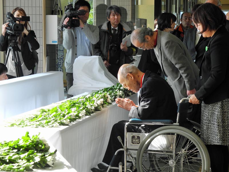 この日は 三条市長をはじめ県議会議員や三条市に避難している避難者 また 避難者を支援し続けている団体などが参列 献花を行った。