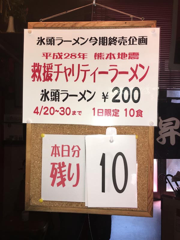 今年も 恒例のイベント『氷頭ラーメンチャリティー販売』が終わった。